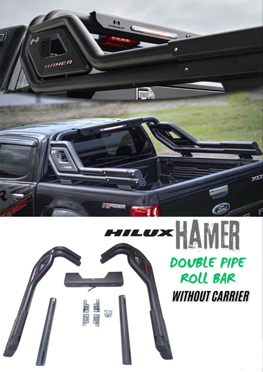 Enhance the rugged appeal and functionality of your Toyota Hilux with the Hamer Double Pipe Roll Bar. Designed for off-road enthusiasts and pickup owners who demand both style and strength, this roll bar delivers a bold, aggressive look while providing added protection and utility.